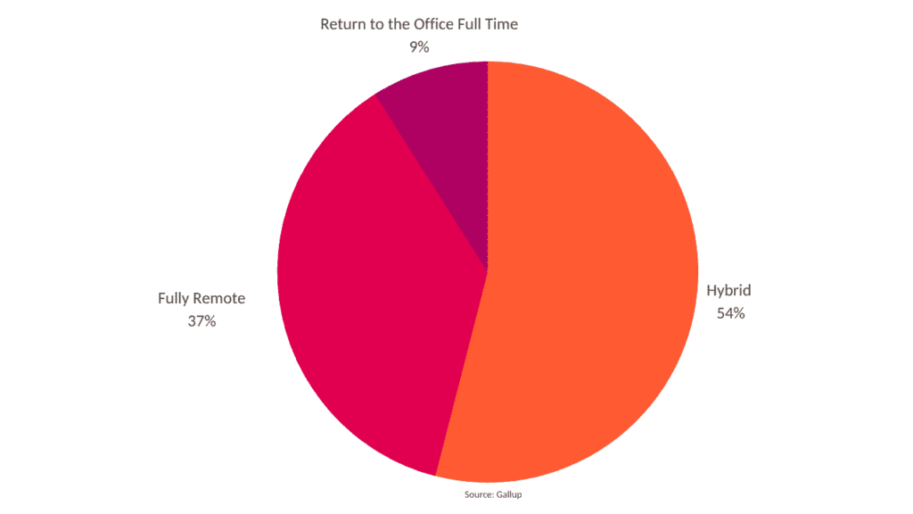 Gallup reported that the preference to work from home is not going away anytime soon. 91 percent of the surveyed workforce said they would prefer a hybrid/remote option over returning to the office full time.