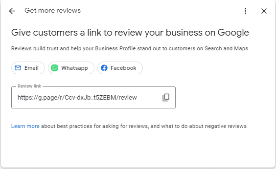 As long as you are the owner of your Google My Business profile, it’s easy to secure this link.