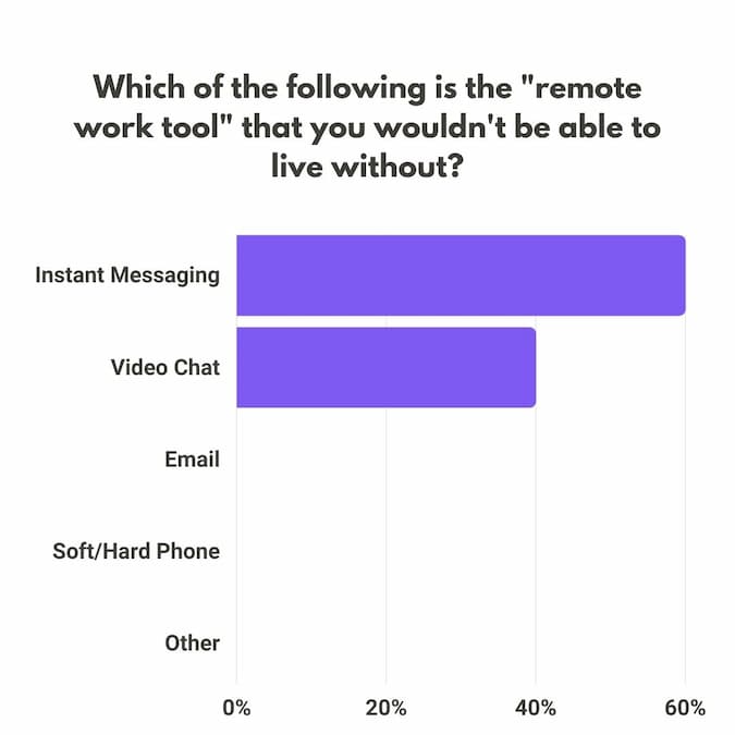 The results are in. An instant messaging tool is essential for achieving the perfect work-from-home setup. Instant messaging is an easy way to keep in touch with your team without being on video or talking on the phone. It helps protect your time because you can quickly ask questions, chat, and give updates without completely stopping the work you’re doing.