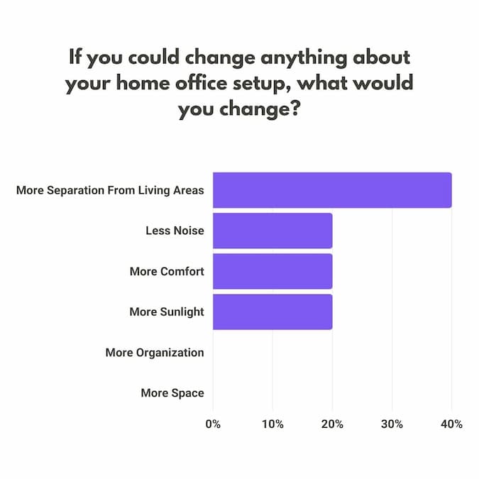 If you could change anything about your home office setup, what would you change? We asked our team to uncover the environmental qualities that would make their work from home setup even better. Here’s what they would change: