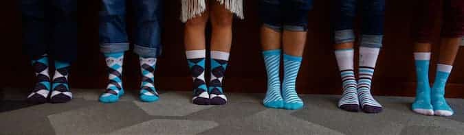 We purchased samples from several different providers and ended up going with 5 different varieties of socks, all tying in our brand colors and essence.