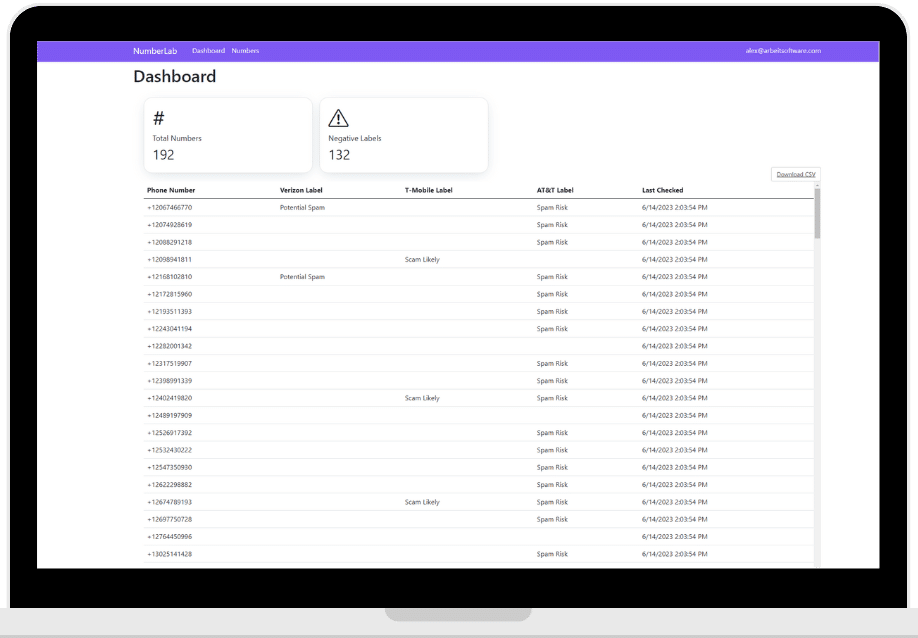 If your calls are mislabeled as SPAM/SCAM you instantly lose credibility with consumers, and it can be difficult to build it back up. Numberlab will let you know when a numbers label changes so you can correct it right away!