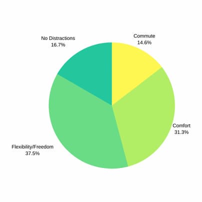 We organized the responses to this question into four categories: Fewer distractions, no commute, comfort, and freedom.